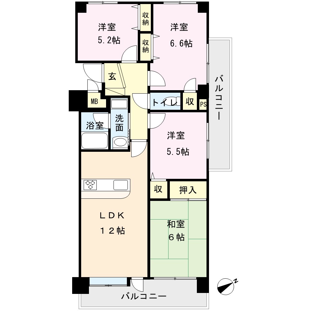 LDK12 畳 洋室6.6 畳 洋室5.5 畳 洋室5.2 畳 和室6 畳